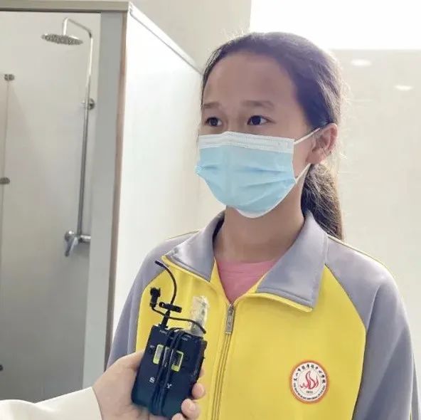 “現在有專門的洗澡室我們每天都可以來洗澡,非常的方便,而且都是單獨的淋浴間,我覺得學校里的條件比家里的還好,非常感謝他們對我們學校資助。”