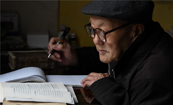 張富清在家看書學習(3月31日攝)。新華社記者 程敏 攝